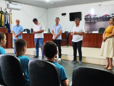 Ao final da visita, os estudantes receberam certificados de participação e expressaram entusiasmo em conhecer de perto o funcionamento da Câmara de Vereadores.
