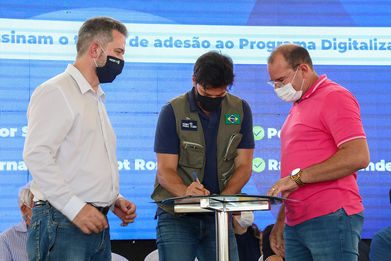 A população de 183 cidades do Ceará, Paraíba, Piauí, Maranhão e Rio Grande do Norte tem agora mais motivos para comemorar: o sinal de televisão digital está bem próximo de chegar às casas. Nessa quarta (6/10), o ministro das Comunicações, Fábio Faria, assinou novos 178 termos de adesão, que confirmam a participação dos municípios no programa Digitaliza Brasil. Outros cinco documentos foram assinados ainda durante solenidade realizada em Pau dos Ferros (RN), no final de setembro. A previsão é de que sejam entregues, entre novembro e dezembro, as estações compartilhadas para transmissão digital.